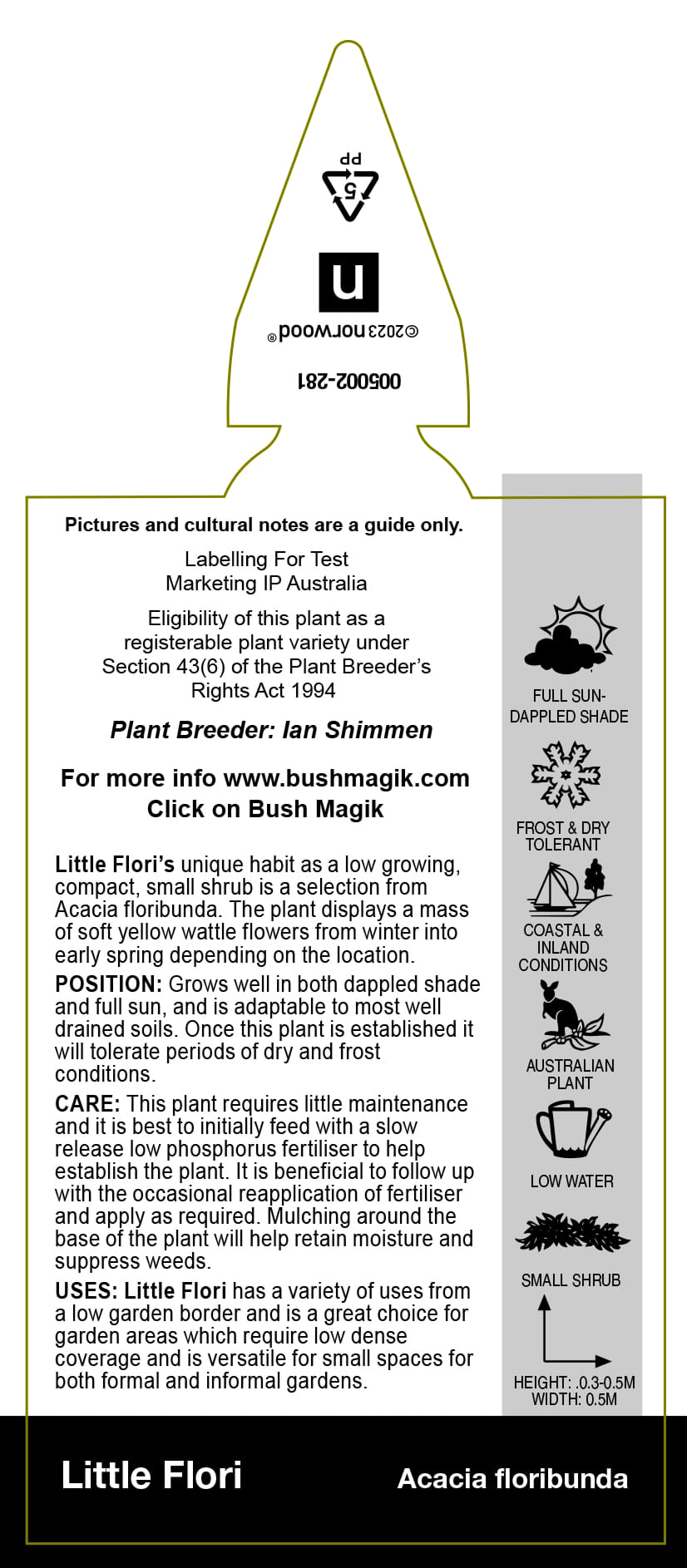 Acacia floribunda dwarf compact form 'Little Flori' - Label