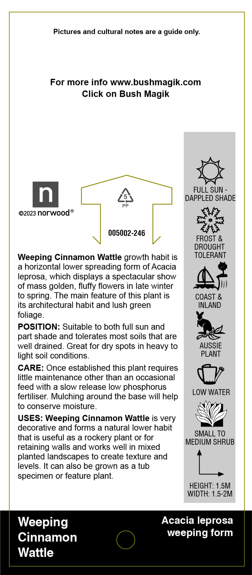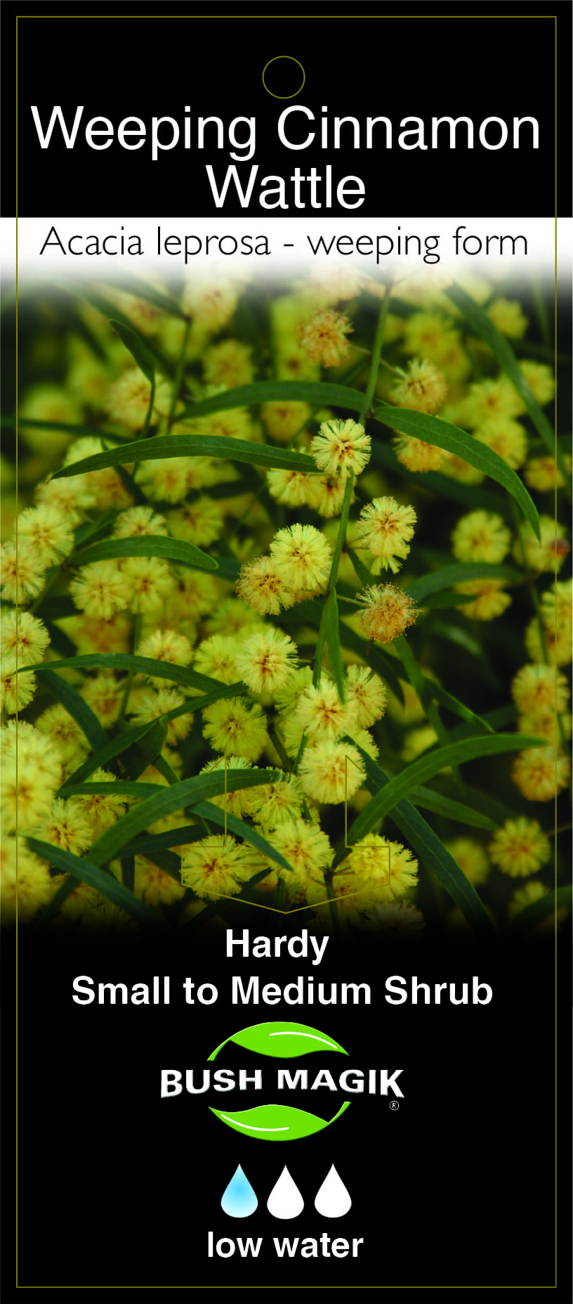 Acacia leprosa 'Weeping Cinnamon Wattle' - Label