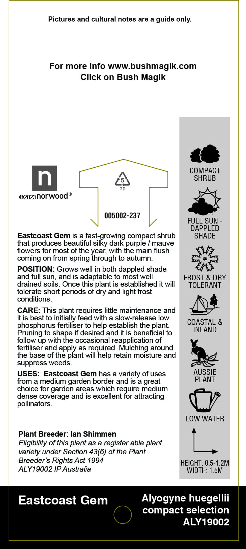 Alynogyne huegelii 'Eastcoast Gem' - Label