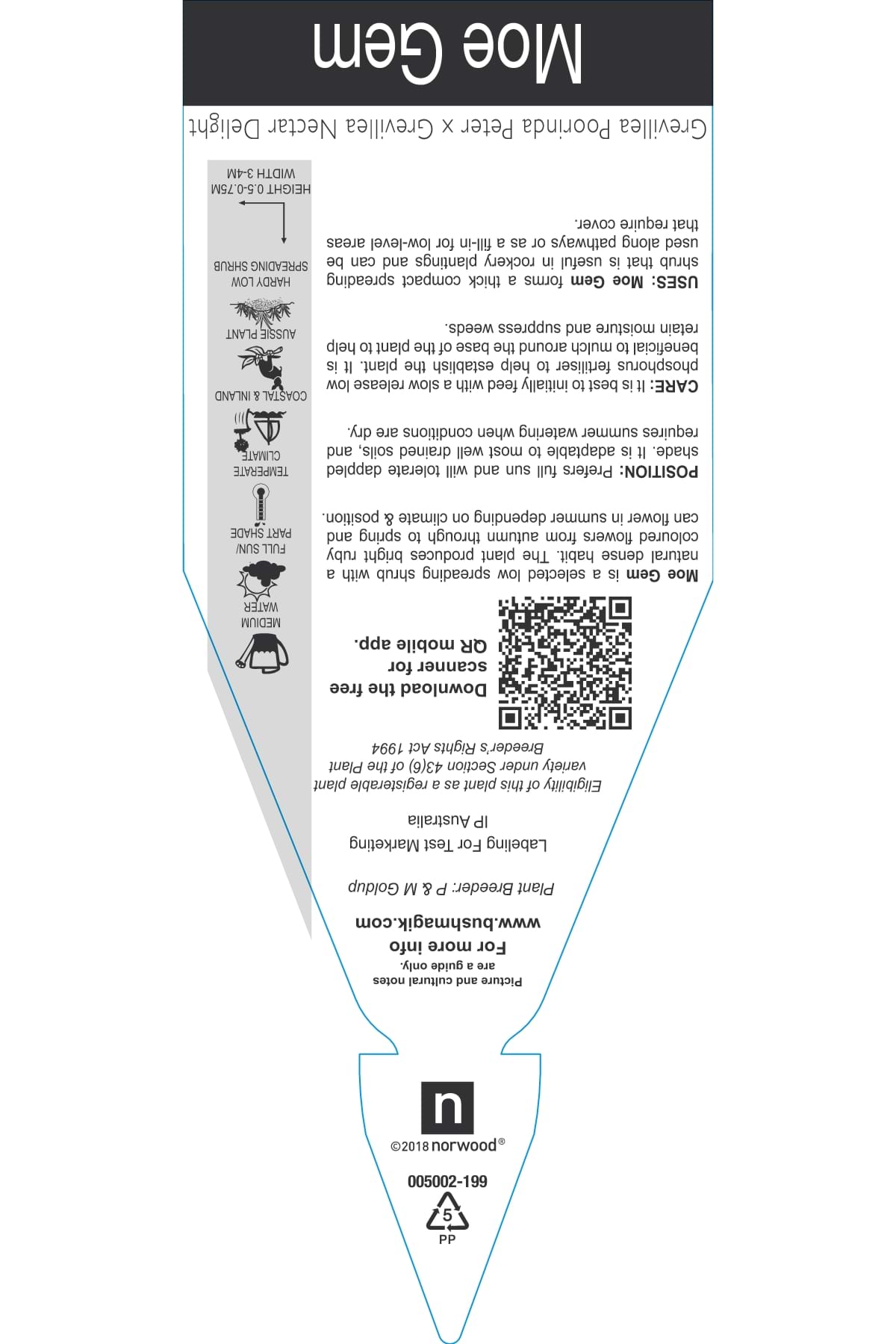 Grevillea Poorinda Peter' x 'Nectar Delight 'Moe Gem' - Label