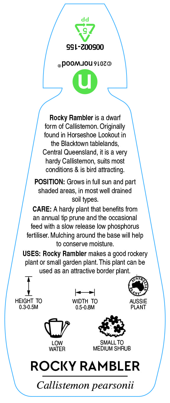 Callistemon pearsonii 'Rocky Rambler' - Label
