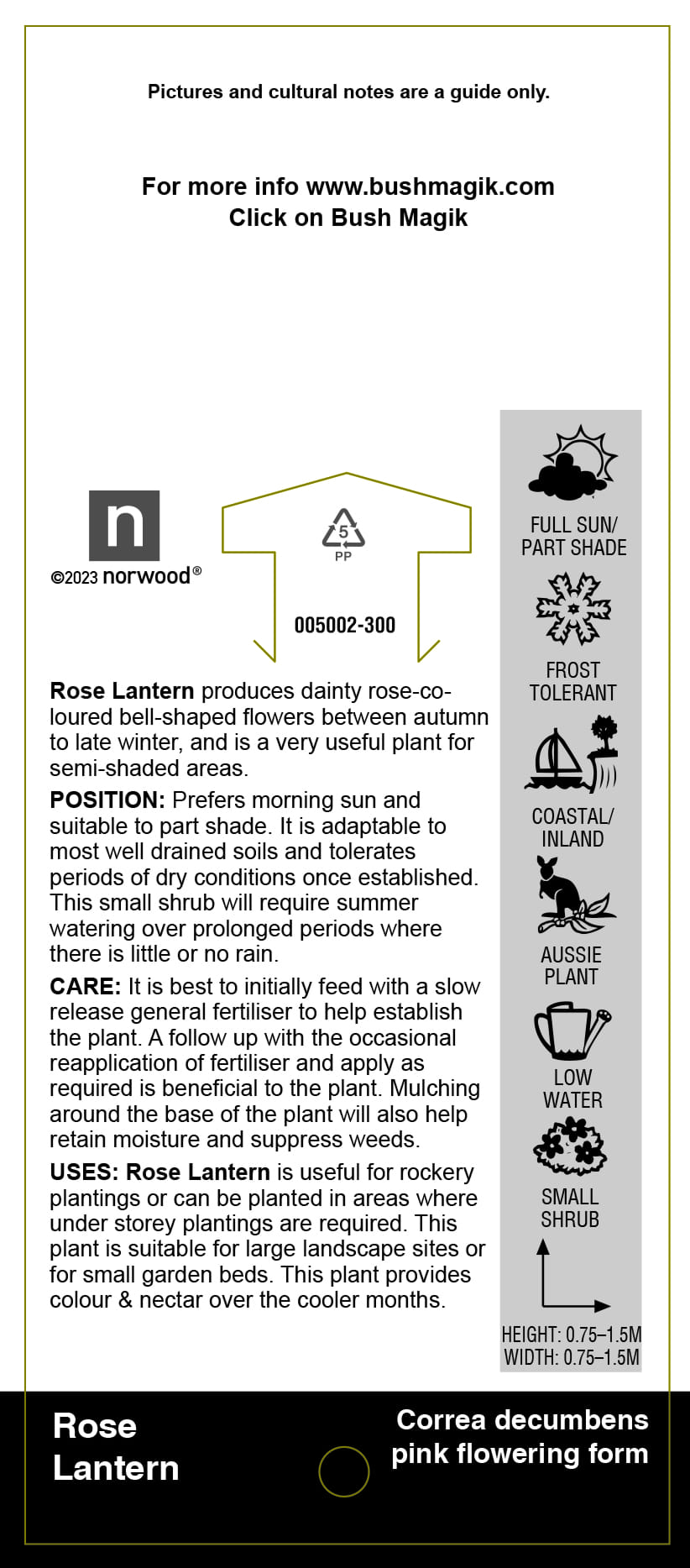 Correa decumbens x 'Rose Lantern' Label