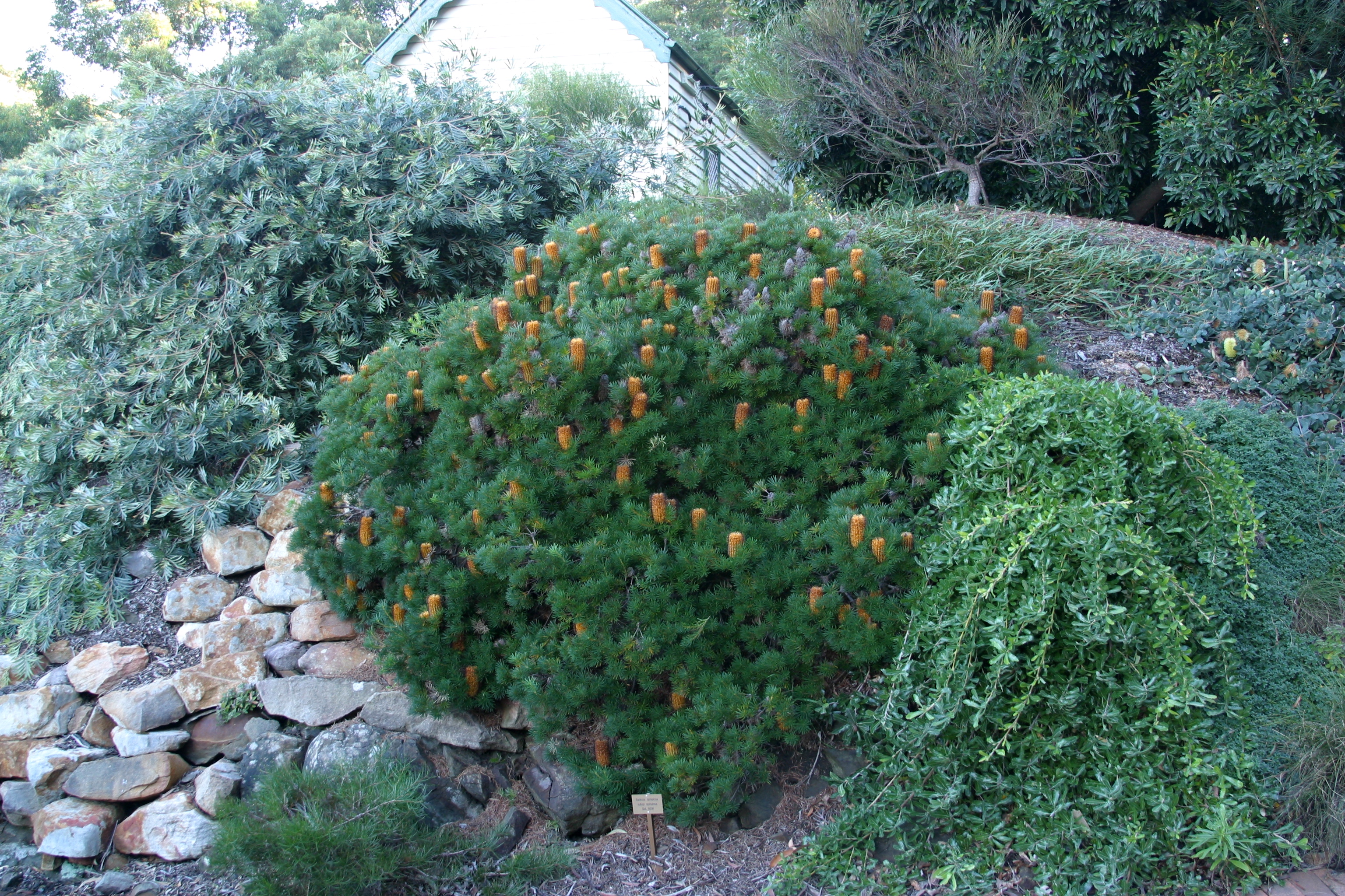 | Information Guide | Bush Candles is a compact low growing form of Banksia spinulosa ‘Hairpin Banksia’. This plant displays a mass of striking golden cylindrical candle like flower heads which appear above the foliage from Autumn through to Winter, and provides nectar for birds and bees over the cooler months. Bush Candles is suitable for any garden that requires low level plantings and can be mixed planted with similar varieties such as Birthday Candles, Cherry Candles, Honey Pots, Stumpy Gold, and Golden Candles. |