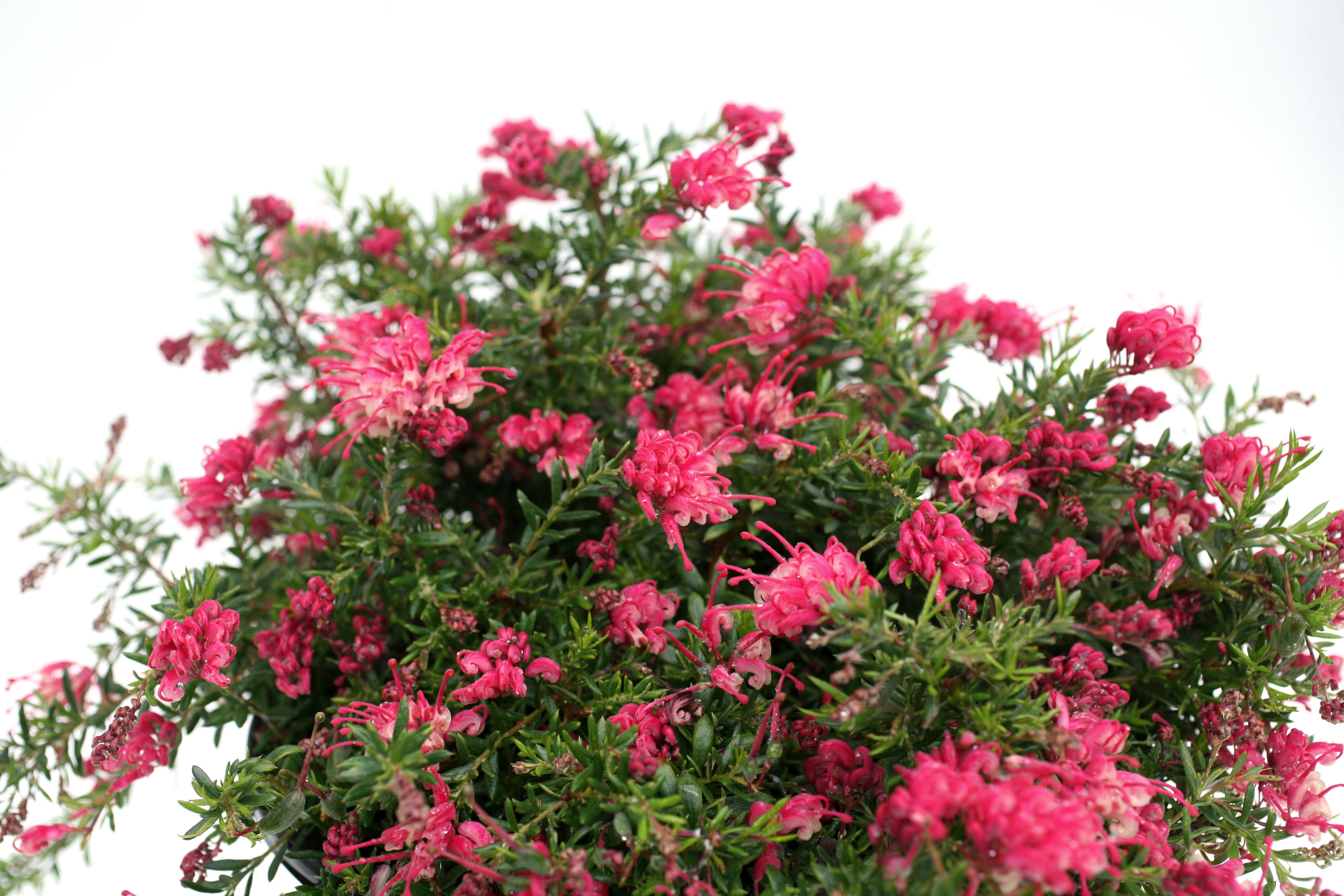 Raspberry Ripple is a small shrub that produces a spectacular mass display of raspberry coloured flowers from autumn to early spring. Raspberry Ripple is dense in habit and provides colour over the cooler months in the landscape. It is a useful shrub where areas require low level cover. It can be mixed planted with other similar varieties such as Grevillea Jelly Baby, Grevillea Strawberry Smoothie, Grevillea Winter Delight, Grevillea Nectar, Grevillea Tanuda, Grevillea lanigera upright and Grevillea Mt Tamboritha. |