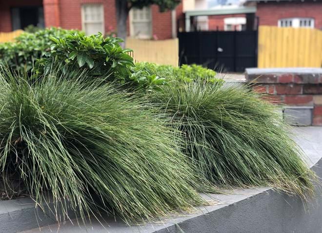 Lomandra Mist has dark bluish-grey leaves that weep gracefully back to the ground. In summer fragrant small yellow flower spikes emerge from reddish-brown buds. Mist forms an attractive contrast for low level plantings and has a tufted grass like appearance. It can be planted in a range of situations, such as rockeries, and in general garden beds on mass and stays evergreen all year around. Other Lomandra confertifolia subsp. rubiginousa varieties include, Lomandra Frosty Top, Lomandra Silver Grace, Lomandra Seascrape, and Lomandra Pacific Sky. |